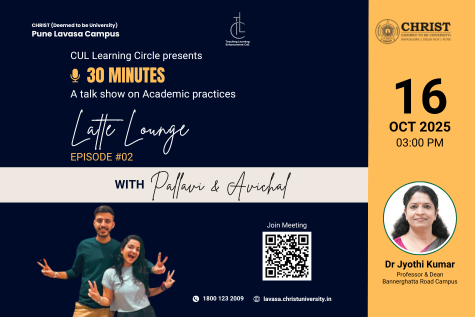 The CUL Learning Circle under the Teaching Learning Enhancement Cell (TLEC) proudly presents “Latte Lounge – Episode #02”, a 30-minute engaging talk show designed to spotlight inspiring academic practices and innovative approaches to teaching and learning. Hosted by the dynamic duo Pallavi and Avichal, the session promises to blend intellectual conversations with an informal, café-style ambiance that encourages reflection, curiosity, and collaboration among faculty and learners alike. This episode features Dr. Jyothi Kumar, Professor and Dean, Bannerghatta Road Campus, CHRIST (Deemed to be University), as the distinguished guest. Known for her exemplary leadership and contributions to higher education, Dr. Jyothi Kumar will share insights on fostering academic excellence, nurturing faculty growth, and creating learner-centric environments within the university ecosystem. Scheduled on 16 October 2025, at 3:00 PM, the session aims to inspire educators to adopt transformative academic practices and build communities of continuous learning. Through Latte Lounge, TLEC continues its mission of promoting dialogue, innovation, and professional growth—one enriching conversation at a time.