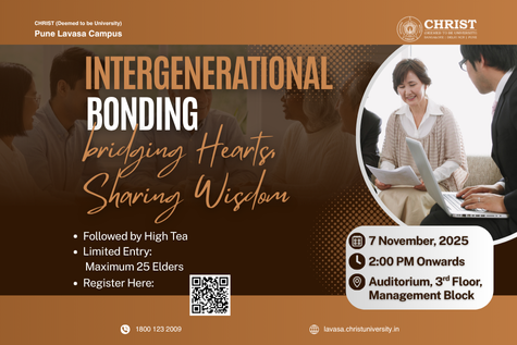 The National Institute of Social Defence (NISD) promotes intergenerational bonding as a vital element of social harmony and inclusive growth in India. It fosters interaction, respect, and mutual understanding between young people and the elderly through community engagement and awareness initiatives. We at Christ University, Lavasa Pune, are privileged to conduct this one-day intergenerational programme under the guidance of NISD, where our students will interact and build meaningful bonds with the senior residents of Ashiana Utsav. This initiative aims to bridge the generational gap, foster empathy, and promote shared learning between youth and elders. Through conversations, activities, and companionship, students will gain insight into the values, life experiences, and cultural heritage of senior citizens. Such interactions reinforce emotional well-being, social inclusion, and mutual respect, reflecting NISD’s vision of creating a compassionate and cohesive society.