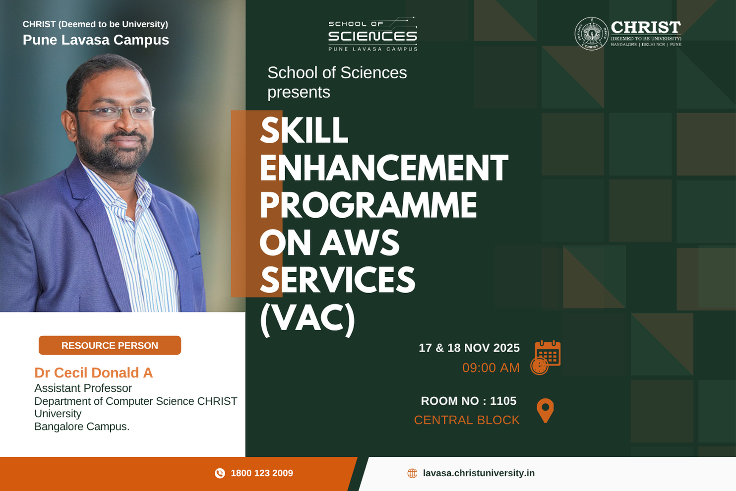 A Two-Day Skill Enhancement Programme on AWS Cloud Services was organized to enhance student’s technical competence and understanding of cloud computing concepts. The session provided a comprehensive introduction to Amazon Web Services (AWS), covering cloud infrastructure, deployment models, virtualization, networking, storage, and security management. Participants explored key AWS services such as EC2, S3, Lambda, CloudWatch, and RDS, learning how to create, deploy, and manage cloud-based applications efficiently. Through interactive demonstrations and guided hands-on lab sessions, attendees will gain practical exposure in building scalable and cost-effective cloud environments. The resource person emphasizes industry use cases, best practices, and the importance of cloud computing in modern data-driven enterprises. The programme aims to bridge the gap between academic knowledge and industry expectations, encouraging students to adopt innovative approaches to cloud implementation. By the end of the training, participants will be well-equipped with essential AWS skills relevant for careers in IT infrastructure, DevOps, and data analytics.
