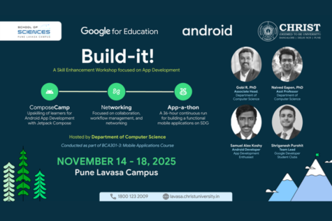 Build-it! is a comprehensive skill-enhancement initiative hosted by the Department of Computer Science, Pune Lavasa Campus, as part of the BCA301-3: Mobile Applications course. Supported by Google for Education and Android, the programme brings together three interconnected learning experiences—ComposeCamp, a Networking and Workflow Management workshop, and the App-a-thon. Build-it! aims to strengthen students’ understanding of modern app development, team collaboration, and end-to-end deployment practices. Sessions are led by experts including Dr Gobi R (Associate Head, Department of Computer Science), Dr Naived Eapen (Assistant Professor), Samuel Alex Koshy (Android Developer), and Shriganesh Purohit (Team Lead, Google Developer Student Clubs). The Mobile Application Development Event Series brings together a curated set of learning experiences designed to strengthen students’ technical competence, collaborative capabilities, and real-world problem-solving skills. Spanning multiple days, the series integrates structured upskilling sessions, a collaboration and workflow workshop, and an intensive App-a-thon focused on building purpose-driven applications aligned with the UN Sustainable Development Goals. The workshop is designed towards the Skill Development of the third semester students pursuing Bachelor of Computer Applications course. Students gain exposure to modern development frameworks, effective teamwork strategies, and end-to-end application workflows, supported by industry practitioners and faculty mentors.