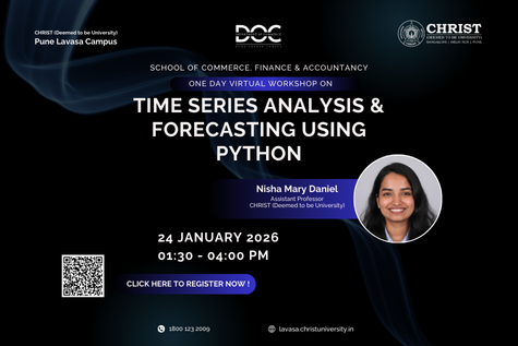 The School of Commerce, Finance & Accountancy is organizing a one-day virtual workshop on Time Series Analysis & Forecasting Using Python. This workshop is designed to provide participants with a practical and conceptual understanding of time series data, its characteristics, and commonly used forecasting techniques. Participants will gain hands-on exposure to Python-based tools for analyzing trends, seasonality, and patterns in real-world data, along with an introduction to basic forecasting models. The session is suitable for students and faculty interested in data analytics, finance, and economics, and aims to strengthen analytical skills relevant to academic research and industry applications.