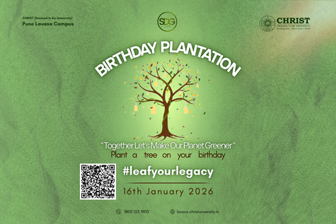 The Plantation Project, to be initiated on 16th January, is a long-term sustainability initiative led by the SDG Cell, Christ University Lavasa, aimed at strengthening ecological balance and environmental responsibility on campus. The project focuses on planting native, perennial, and fruit-bearing saplings that support biodiversity, attract birds, and contribute to a self-sustaining green ecosystem. A unique feature of this initiative is the Birthday Plantation Model, where students, faculty, and staff plant a sapling on their birthdays any special event , creating a personal and emotional connection with nature. Each plant will be identified and monitored for long-term care, promoting accountability and environmental awareness. A protected green space symbolising harmony between humans and nature. Through expert guidance and structured planning, this initiative aims to leave a lasting ecological footprint while nurturing environmental consciousness among the campus community.