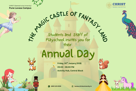 The students of Christ Playschool are all set to celebrate their Annual Day with great enthusiasm and joy, bringing alive the playful and magical world of Fantasy Land on stage. This much-awaited event will showcase the magic, mischief, and charm of Magical characters, creating a delightful experience for parents, teachers, and guests. The tiny tots will mesmerize the audience with colorful dance performances and a heartwarming skit on THE MAGIC CASTLE OF FANTASY LAND. Dressed as little magical characters like the mermaid, unicorn, butterflies and toy soldiers, the children will bring some magic to your lives.The celebration aims to not only entertain but also instill values of love, kindness, and harmony in young minds. With the dedicated efforts of teachers and the enthusiasm of our little stars, the Annual Day promises to be a joyous and unforgettable celebration. We look forward to witnessing the magic of THE MAGIC CASTLE OF FANTASY LAND come alive on stage!