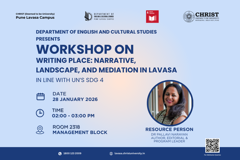The Department of English and Cultural Studies is planning a workshop titled 'Writing Place: Narrative, Landscape, and Mediation in Lavasa' on 28th January 2026. This workshop will examine place-based narrative writing in Lavasa through literary practice, critical reading, and the careful use of artificial intelligence tools. Designed for students in English, Cultural Studies, and Digital Humanities, the workshop approaches Lavasa as a constructed and contested space rather than a neutral setting. The resource person for this event is Dr Pallavi Narayan. Dr Narayan is an author, editor, and educator with over sixteen years of experience in trade and academic publishing. Her work in publishing spans Routledge, Pan Macmillan, Penguin Random House, NUS Press, NTU Centre for Contemporary Art, and Singapore Management University and others. She has held academic leadership roles as Associate Professor of Literary Studies at O.P. Jindal Global University and Director of Ahmedabad University's creative writing programme, and continues to work closely with writers and editors. Participants will engage with short literary and nonfiction readings that demonstrate how attention to landscape, infrastructure, and lived experience shapes narrative voice and ethical stance. Guided field-writing exercises will invite students to observe Lavasa’s designed environments, ecological traces, and moments of absence, producing short narratives grounded in sensory detail and specificity. Artificial intelligence tools will be introduced as critical readers rather than creative substitutes. Students will use language models and basic text-analysis tools to reflect on patterns, assumptions, and generic language in their own drafts. This process foregrounds revision and highlights how dominant narratives about place and progress circulate through digital systems. Clear constraints will ensure that AI supports critical reflection without displacing human authorship. By combining literary reading, situated writing, and ethical AI use, the workshop offers a grounded approach to creative practice within a Digital Humanities framework.