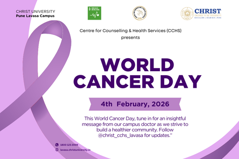 On the occasion of World Cancer Day, the Centre for Counselling & Health Services (CCHS) will conduct a digital awareness initiative aimed at spreading accurate information on cancer awareness, prevention, and early detection among students and the campus community. As part of the campaign, one Instagram reel will be shared by the campus visiting doctor, providing medical insights into cancer awareness, common risk factors, and the importance of early screening and timely medical consultation. The reel will focus on preventive health practices and will address common misconceptions related to cancer. In addition, two informative Instagram posts will be designed and shared by the CCHS team, highlighting key aspects of cancer prevention, early warning signs, lifestyle-related risk factors, and the importance of regular health check-ups. The posts will present evidence-based information in a clear, student-friendly, and visually engaging format. Through this online initiative, CCHS aims to promote health literacy, encourage preventive healthcare behaviors, and foster a culture of awareness and responsibility toward physical and mental well-being. By utilizing digital platforms, the campaign is expected to ensure wider reach and engagement, reinforcing the message that awareness and early action play a crucial role in cancer prevention and care.