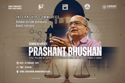 The School of Law, Christ (deemed to be) University, Pune, Lavasa is honoured to host Senior Advocate Prashant Bhushan for a special guest lecture, offering students a valuable opportunity to engage with one of India’s most distinguished legal professionals. With several decades of experience at the Bar, Mr. Bhushan has been a prominent figure in constitutional law, public interest litigation, and administrative law. His work has played a meaningful role in shaping legal discourse on governance, transparency, environmental protection, and the protection of fundamental rights. Over the years, he has been known for his strong legal analysis and commitment to constitutional principles. This guest lecture offers students a rare opportunity to learn directly from a senior practitioner about real-life courtroom experiences, constitutional litigation, and the broader responsibilities of the legal profession. The session is expected to encourage thoughtful discussion and provide valuable perspectives for students interested in law, public service, and public policy.