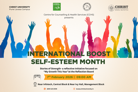 In observance of International Self-Esteem Boost Month, the Centre for Counselling and Health Services (CCHS) will be organizing a reflective and engaging campus initiative titled “One Strength I’m Proud Of – My Growth This Year.” The event aims to encourage students to pause, reflect, and recognize their personal strengths and growth, thereby fostering self- awareness, confidence, and emotional well-being. The initiative is designed as an interactive, student-friendly activity that promotes positive self- reflection in a simple yet impactful manner. Reflection boards will be set up at prominent locations across the campus, including the Management Block and the Central Block, to ensure maximum student engagement and visibility. These boards will invite students to respond to two reflective prompts: “One strength I’m proud of” and “My growth this year.” Students will be encouraged to write down their thoughts, experiences, and reflections on these boards, allowing them to acknowledge their personal journeys and achievements. The activity aims to create a safe and supportive space where students can openly express their growth, whether academic, emotional, social, or personal. Peer Educators from CCHS will play an active role in facilitating the event. They will encourage participation, explain the purpose of the activity, and motivate students to engage in self- reflection. Their involvement will help create a welcoming environment and promote meaningful conversations around self-esteem, resilience, and personal development. Through peer-led engagement, the initiative seeks to normalize discussions around self-growth and mental well- being within the campus community. The event is expected to have a positive impact on students by helping them identify and acknowledge their strengths, thereby enhancing self-esteem and self-confidence. By publicly recognizing personal growth, students may feel a sense of validation and encouragement, reinforcing positive self-perception. The collective display of reflections is also expected to foster a sense of connection and belonging, reminding students that growth is a shared and ongoing process. Through this initiative, CCHS aims to cultivate a more compassionate and mentally healthy campus culture. The activity aligns with the broader objectives of promoting emotional awareness, resilience, and holistic development among students. By encouraging reflection and self-appreciation, the event seeks to empower students to recognize their potential and continue their journey toward personal and academic growth. Overall, “One Strength I’m Proud Of – My Growth This Year” is envisioned as a meaningful and impactful initiative that celebrates self-worth, encourages introspection, and reinforces the importance of nurturing one’s mental and emotional well-being.