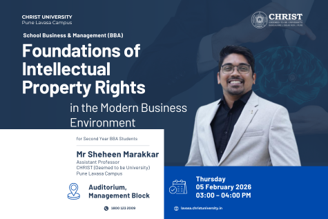 The session on “Foundations of Intellectual Property Rights in the Modern Business Environment” is being organized for Second Year BBA students with the objective of creating awareness about the growing importance of intellectual property in today’s knowledge-driven economy. The session will introduce students to the fundamental concepts of intellectual property rights, including patents, copyrights, trademarks, and industrial designs, and explain their relevance in modern business operations. The resource person will discuss how intellectual property plays a critical role in encouraging innovation, protecting creative ideas, and enhancing the competitive advantage of firms across industries. The session will also highlight the legal and strategic aspects of intellectual property management, with practical examples from business and entrepreneurial contexts. By the end of the session, students are expected to gain a clear understanding of how intellectual property rights contribute to ethical business practices, sustainable growth, and long-term value creation in the modern business environment.