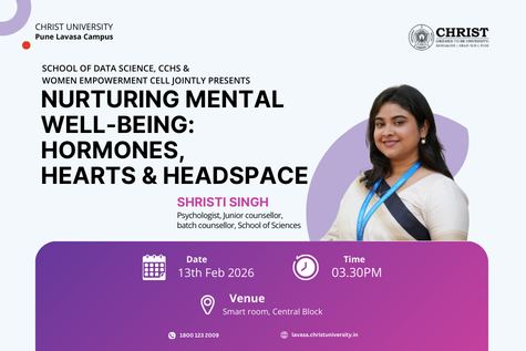 Hormones, Hearts & Headspace is a structured wellness and awareness session designed for female students. The program focuses on promoting holistic well-being by addressing key aspects of physical, mental, and hormonal health during early adulthood. The session provides evidence-informed information on menstrual health, hormonal changes, emotional regulation, mood fluctuations, and common psychological experiences during this developmental phase. It also explores themes such as attraction, emotional relationships, lifestyle practices, nutrition, and stress management, emphasising their role in overall health and academic functioning. Delivered in a supportive and non-judgmental manner, the session encourages self-awareness, informed decision-making, and healthy coping strategies. Interactive discussions allow participants to clarify doubts and develop a better understanding of their bodies and emotional experiences. This initiative aims to equip students with practical knowledge and awareness to support long-term physical, emotional, and psychological well-being."