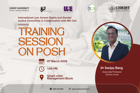 The International Law, Human Rights and Gender Justice Committee, School of Law, is organising a training session on the Prevention of Sexual Harassment (POSH) for the housekeeping staff of the campus on 7th March 2026. The session will be conducted by Dr. Sanjay Bang, with the objective of creating awareness about safe and respectful workplace practices and the legal protections available against sexual harassment. To ensure better accessibility and understanding, the session will be conducted in Marathi, enabling participants to comfortably engage with the discussion and clarify their doubts. The programme will introduce the basic concepts of sexual harassment, rights and responsibilities of employees, and the available complaint and support mechanisms within the institution. Emphasis will also be placed on maintaining dignity, mutual respect, and a supportive work environment. Through this initiative, the committee aims to empower staff members with essential knowledge and contribute to building a safe, inclusive, and respectful campus environment for all members of the institution.