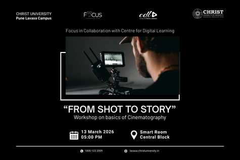 The Photography Club Focus, in collaboration with the Centre for Digital Learning (CDL), CHRIST (Deemed to be University), Pune Lavasa Campus, is organizing a Basic Cinematography Workshop titled “From Shot to Story.” The session aims to introduce students to the fundamentals of videography and visual storytelling. This workshop will help participants understand essential videography concepts such as camera handling, shot composition, framing, camera movements, lighting basics, and storytelling techniques. Through practical insights and demonstrations, students will learn how to transform simple shots into meaningful visual narratives.