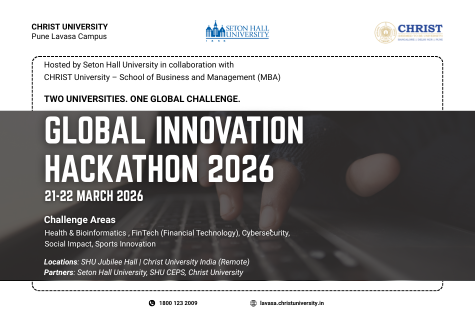 The Global Innovation Hackathon 2026, hosted by Seton Hall University, will take place on March 21–22, 2026, bringing together students from diverse academic backgrounds to collaborate on innovative solutions to real-world challenges. This year’s event features an international collaboration with CHRIST (Deemed to be University), India, where two teams from the MBA program at the School of Business and Management will participate remotely, adding a strong global and cross-cultural dimension to the competition. The 24-hour hackathon provides students with an immersive, hands-on experience to apply their knowledge across data science, artificial intelligence, fintech, cybersecurity, social impact, and sports innovation. Participants will work in interdisciplinary teams to develop ideas, prototypes, or business solutions under the guidance of faculty mentors, industry experts, and alumni. No prior technical background is required, as training workshops will be conducted before the event to help participants prepare. The hackathon promotes innovation, collaboration, and global learning while preparing students for today’s technology-driven business environment.