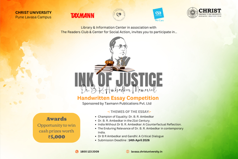 The “Ink of Justice: Dr. B. R. Ambedkar Memorial Handwritten Essay Competition” is organized by the Library & Information Center in association with The Readers Club and the Center for Social Action to commemorate the birth anniversary of Dr. B. R. Ambedkar, the chief architect of the Constitution of India and a leading advocate of equality, justice, and social reform. The competition aims to encourage participants to reflect on Ambedkar’s life, ideas, and contributions through thoughtful handwritten essays. The competition is open to students, faculty members, administrative staff, housekeeping staff, and school students from Dasave Public School and Zilla Parishad Primary School, Dasave. Participants may write essays in any language such as English, Hindi, Marathi, Telugu, or Tamil, with a maximum limit of 1000 words. The last date for submission of handwritten essays is 11 April 2026 (12:00 PM) at the Central Library, Central Block, CHRIST (Deemed to be University), Pune Lavasa Campus. The results will be declared on 14 April 2026.