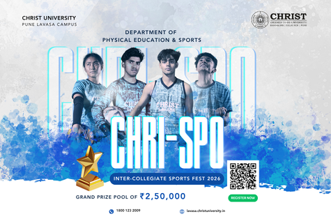 The Department of Physical Education and Sports, CHRIST (Deemed to be University), Pune Lavasa Campus, is proud to organize CHRI-SPO’26, an Inter-Collegiate Sports Fest from 9th to 11th April 2026. This annual sports fest aims to bring together students from various colleges to showcase their athletic talents, promote sportsmanship, and encourage healthy competition. The event features a wide range of sports including Basketball, Cricket, Futsal, Volleyball, Badminton, Table Tennis, Lawn Tennis, and Chess. CHRI-SPO’26 promises an exciting platform for athletes to compete at a high level while fostering teamwork, discipline, and unity among participants. With well-organized matches, attractive prizes, and vibrant participation, the fest ensures a memorable experience for both players and spectators. The Department invites enthusiastic participants to be part of this grand sporting celebration and make CHRI-SPO’26 a remarkable success.
