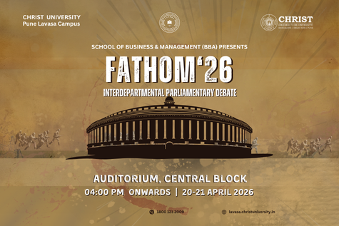 Fathom’26 is an interdepartmental debate competition hosted by the ARTIBUS MDQ Club under Christ University School of Business and Management (CUSBMA), Lavasa, bringing together some of the brightest student minds for an engaging exchange of ideas. Conducted in the Indian Parliamentary Debate (IPD) format, the event challenges participants to think critically, articulate persuasively, and respond dynamically under pressure. Fathom’26 provides a platform for students across departments to showcase their analytical abilities, public speaking skills, and awareness of contemporary issues. The competition fosters healthy discourse, teamwork, and strategic thinking in a formal yet vibrant setting. The final day culminates in a valedictory ceremony, celebrating excellence and recognizing outstanding debaters. Through Fathom’26, Christ University School of Business and Management continues its commitment to nurturing confident communicators and future leaders capable of engaging in meaningful dialogue and informed decision-making.